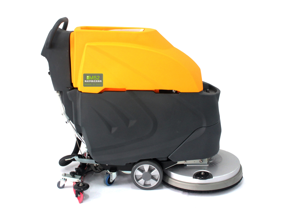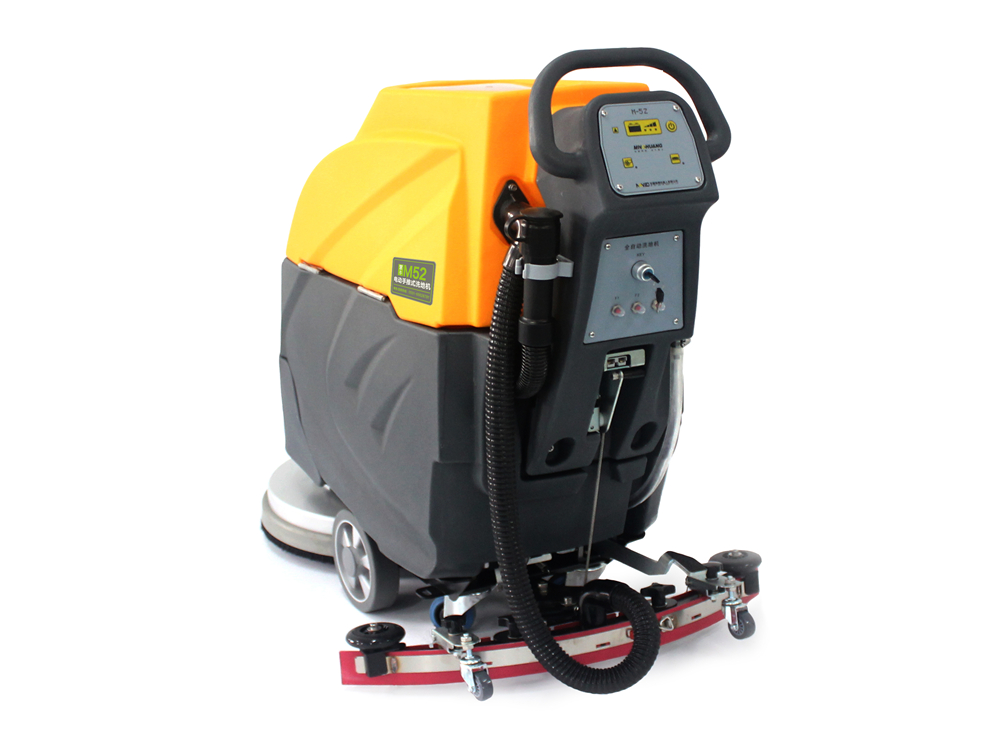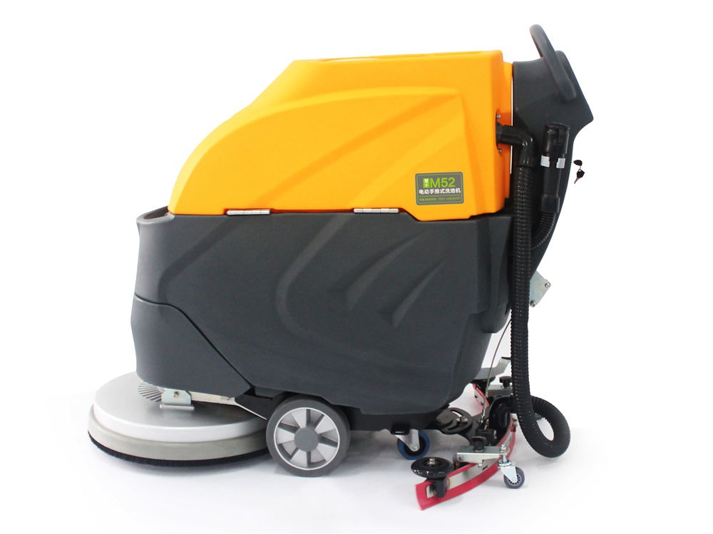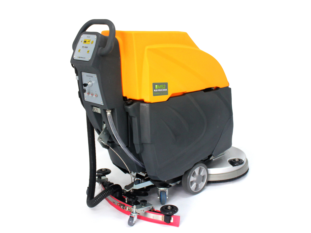 M52電動手推式洗地機集洗刷和吸干為一體,可將各種地面上的污漬洗刷干凈,并通過吸水系統將洗刷的污水吸干,機器所過之處一干二凈、無殘留物無水漬。