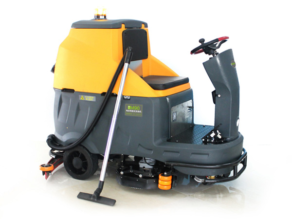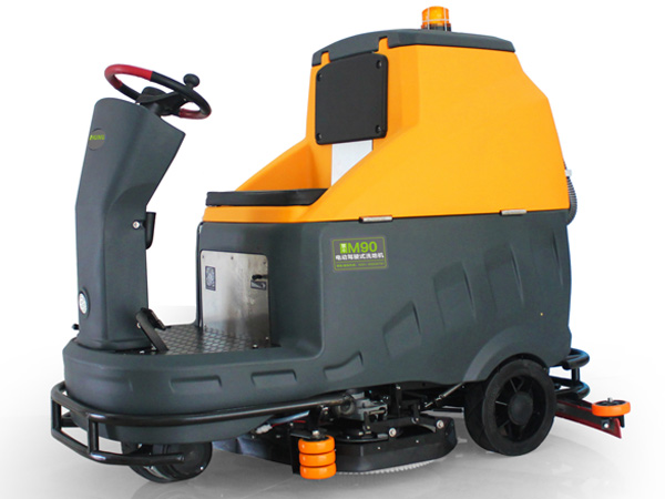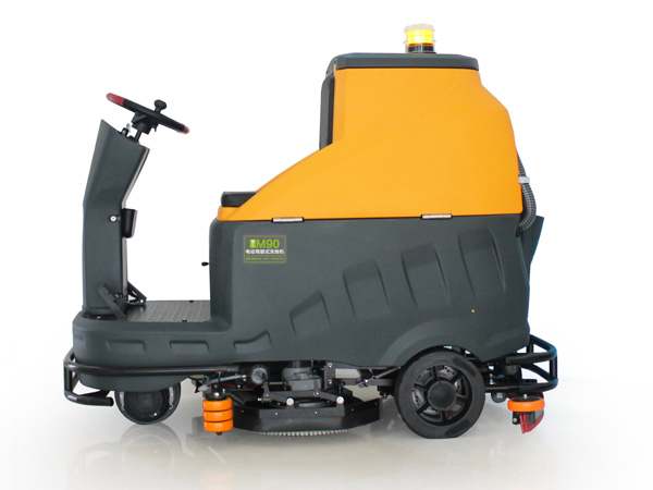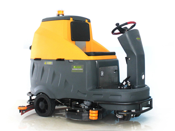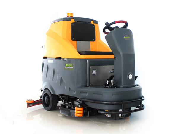 M90電動駕駛式洗地機是一款大型雙刷駕駛式洗地機,集洗刷和吸干為一體,刷盤和刮水耙均可自動升降,在使用人員的駕駛下可將地面上的污漬洗刷干凈,并通過吸水系統將洗刷的污水吸干,機器所過之處一干二凈、無殘留物無水漬;